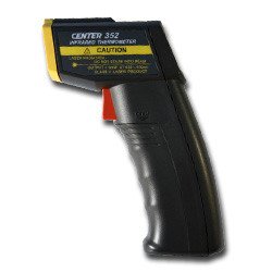 CENTER 352 is an DS ratio 12:1 infrared thermometer. With the gun like shaping, users can aim laser indicator to the measuring target just by instinct. Celsius or Fahrenheit can be set through switch. Laser can also be turned off by user's preference.